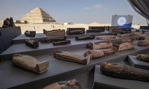 Working with an Egyptian team including Youssef the site director Waziri chose to excavate near a mysterious temple called the Bubasteion dedicated to the cat goddess Bastet that had been cut.